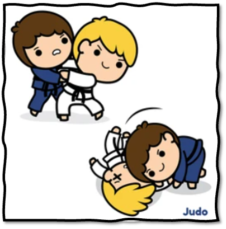 Alle varmer op sammen med trænere fra Horsens Judoklub